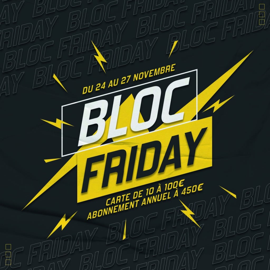 Le Black Friday, comme vous le savez peut-être, c’est habituellement une journée de réductions sur une large gamme de produits du commerce. Et bien, chez Vertical’Art, nous avons créé les Bloc Friday, le super Black Friday de l’escalade : un week-end de 4 jours de GROSSES réductions sur nos abonnements et cartes d’entrées dans nos salles de bloc.